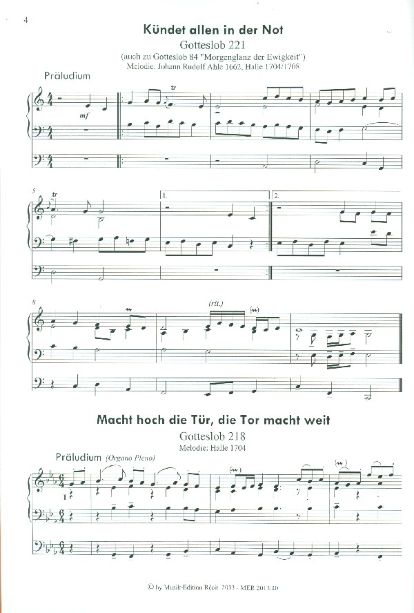 ersetzt MER2002.30 Funke, Michael C., Koautor O Heiland reiß die Himmel auf Kündet allen aus der Not Macht hoch die Tür die Tor macht weit Wachet auf ruft uns die Stimme Es kommt ein Schiff geladen Lobt Gott ihr Christen alle gleich Vom Himmel hoch da komm ich her Hört es singt und klingt mit Schalle Zu Bethlehem geboren In dulci jubilo Lobpreiset all zu dieser Zeit Nun freut euch ihr Christen