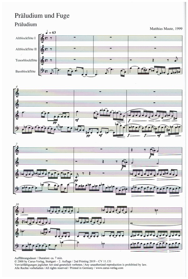 | Untertitel: | für 4 Blockflöten (AATB) Partitur und Stimmen |