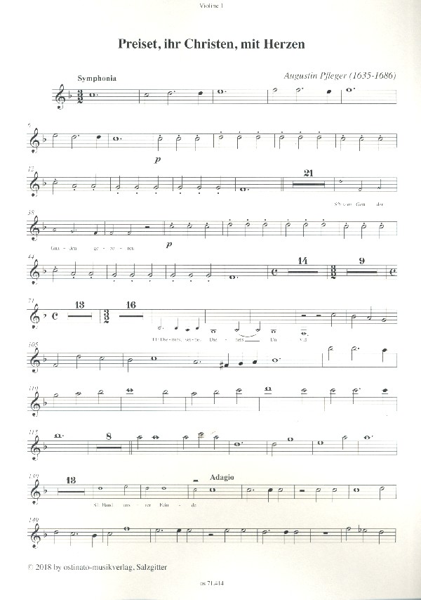 | Untertitel: | für 5 Stimmen, 2 Violinen, 2 Violen und Bc Violine 1 |