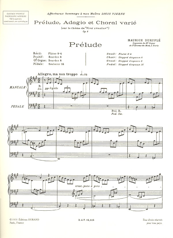 Produktinformationen "Prélude, Adagio et Choral varié sur"