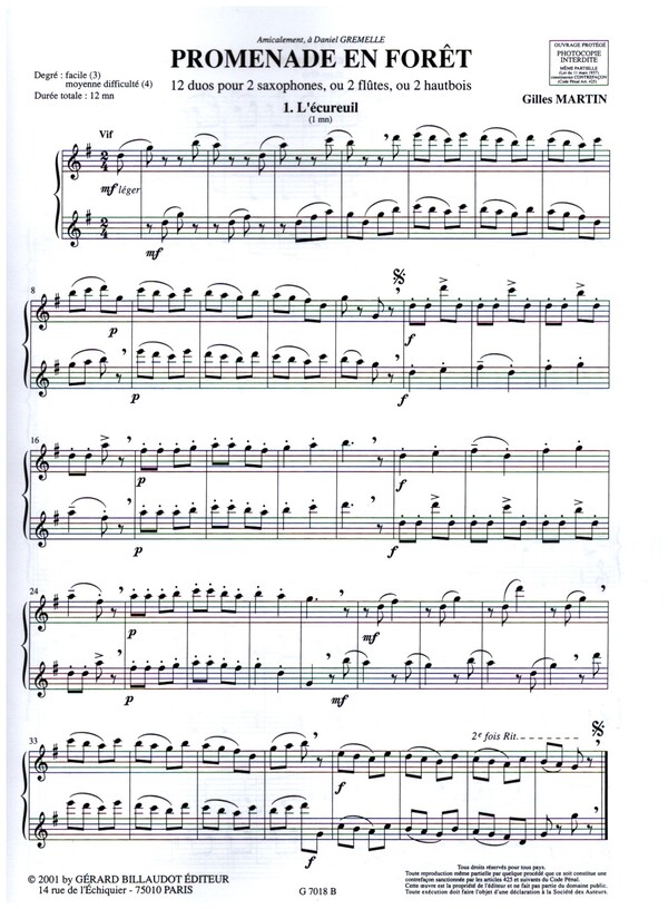 | Untertitel: | pour 2 saxophones ou 2 flûtes ou 2 hautbois partition |
