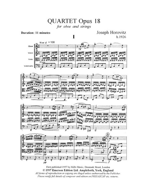 Produktinformationen "Quartet op.18 for oboe and string trio"