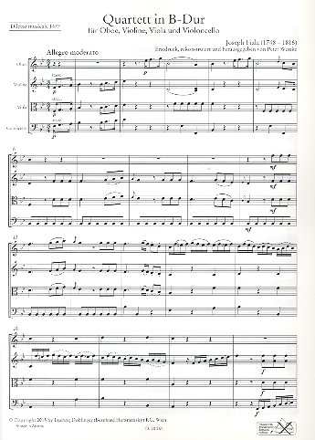 | Untertitel: | für Oboe, Violine, Viola und Violoncello Partitur und Stimmen |
