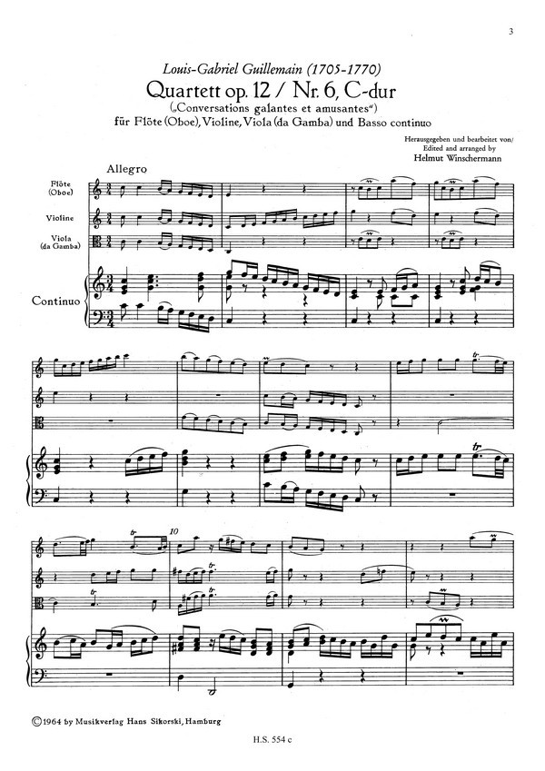 | Untertitel: | Flöte, Violine, Violoncello und Bc Partitur und 4 Stimmen |