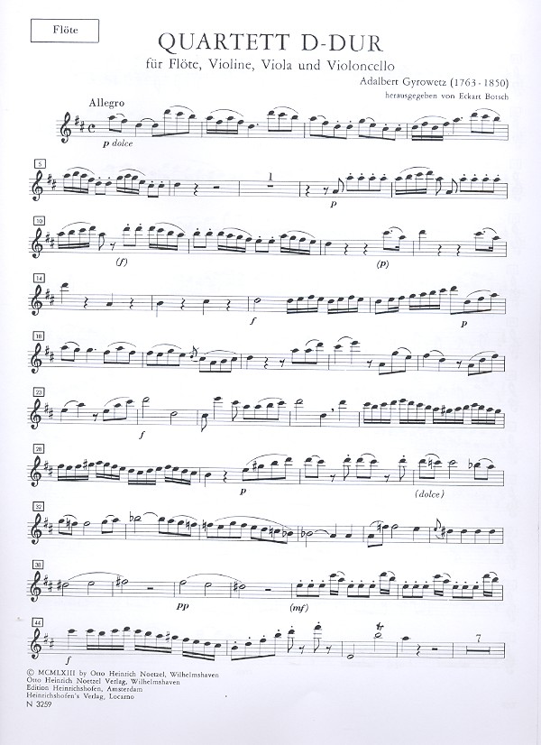 Quartett D-Dur für Flöte und