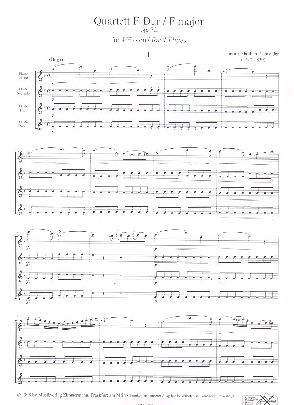 Quartett F-Dur op.72 für 4 Flöten