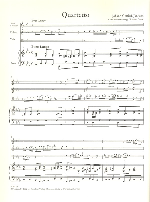 | Untertitel: | für Oboe (Violine), Violine, Viola und Bc Partitur und Stimmen |