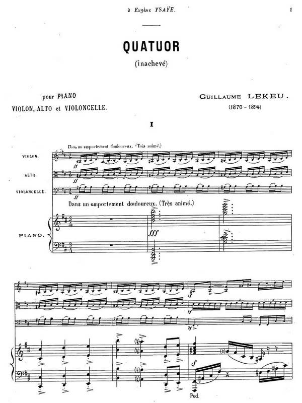 Quatuor pour Piano, Violon, Alto & Violoncelle (Piano performance score & parts)