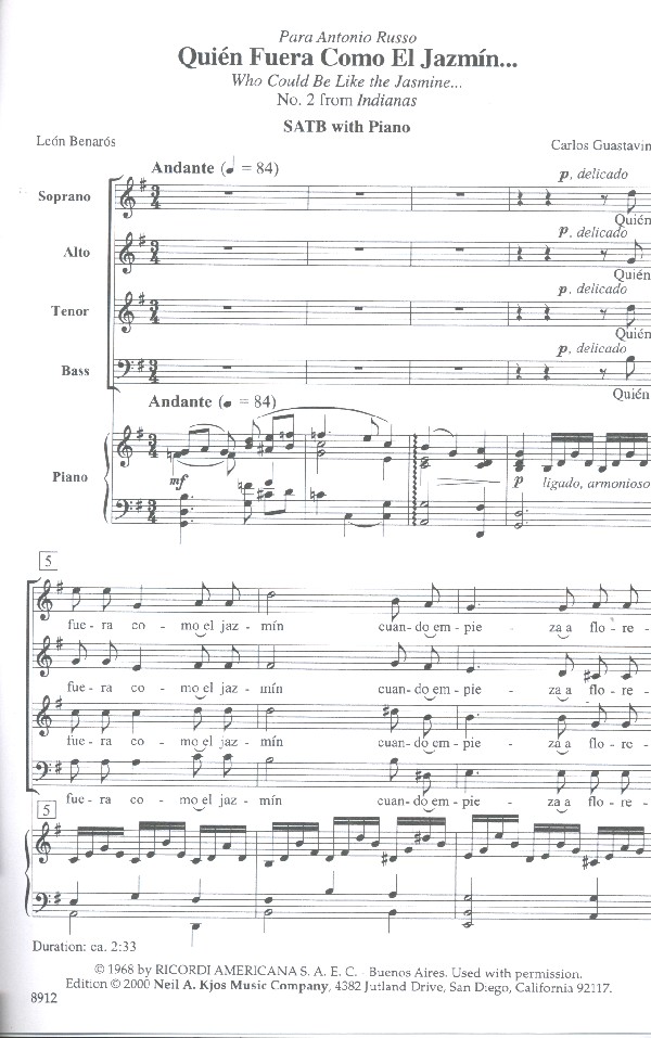 Latin american Choral Series Escalada, Oscar, ed Indianas no.2