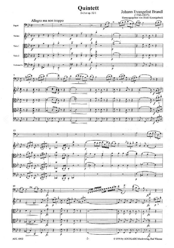 Produktinformationen "Quintett B-Dur op.52,1 für Fagott,"