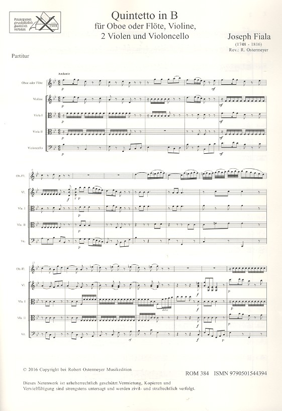 | Untertitel: | für Oboe (Flöte), Violine, 2 Violen und Violoncello Partitur und Stimmen |