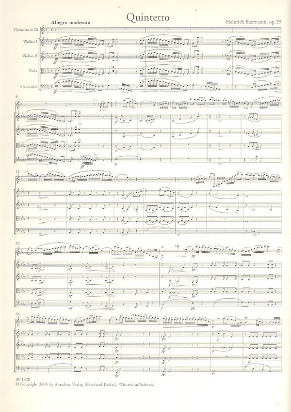 Quintett Es-dur op.19 für Klarinette,