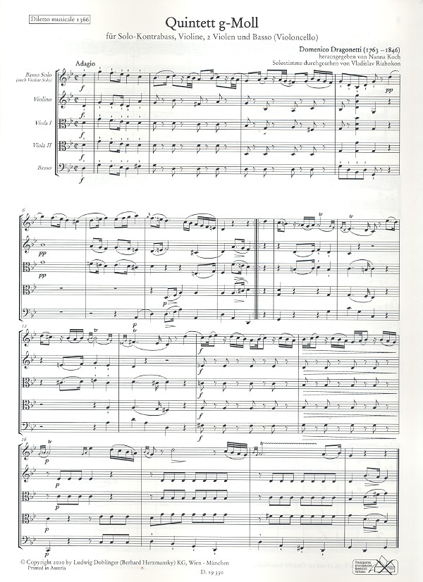 Quintett g-Moll für Kontrabass (Violine),