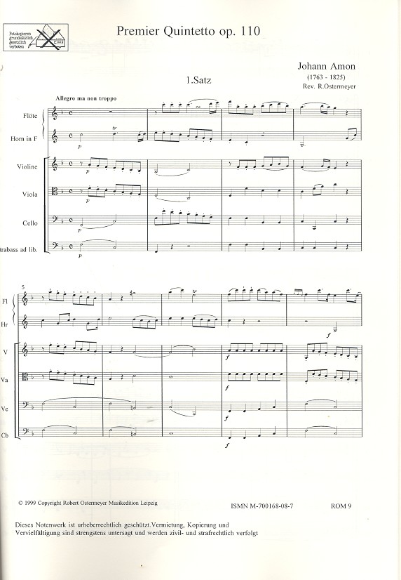 Quintett op.110 für Horn, Flöte, Violine, Viola