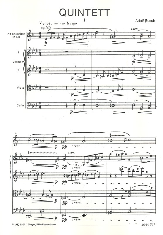| Untertitel: | für Altsaxophon und Streichquartett Partitur |
