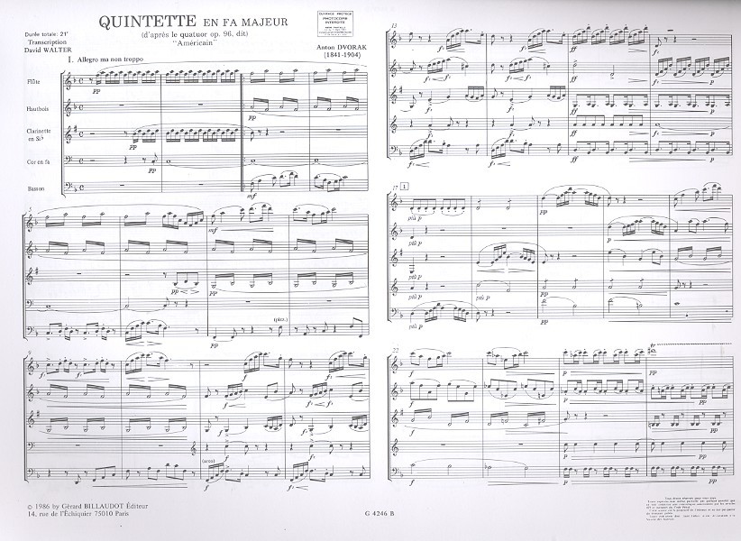 Quintette fa majeur d'après le quatuor op.96 dit Americain