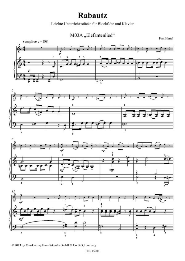 Rabautz für Blockflöte und Klavier