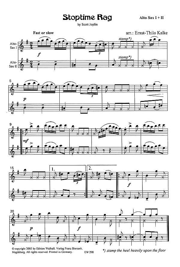 | Untertitel: | für 2 Altsaxophone (Tenorsax/Altsax) Partitur und Stimmen |