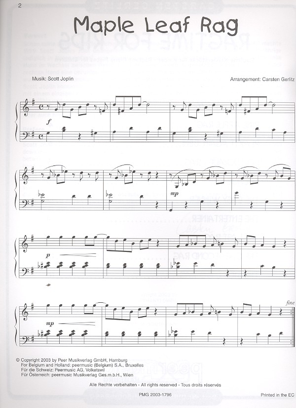 Maple Leaf Rag Pine Apple Rag Play it again ben Schluckauf-Rag Solace The easy Winner The Entertainer The last Rag The one second Rag The stop and go Rag