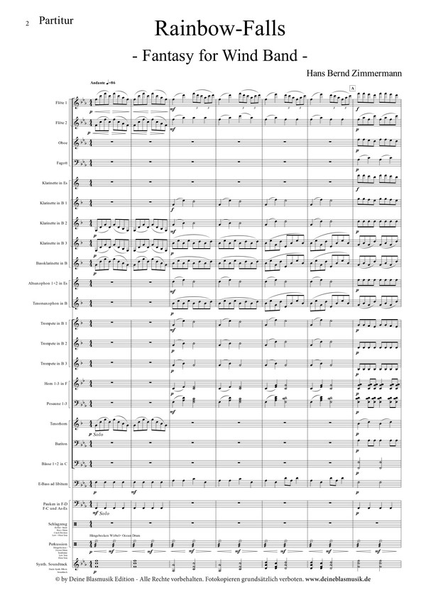 Bei einer Reise nach Kanada durfte Hans Bernd Zimmermann dieses Bild erleben, welches ihn zur seiner Komposition 'Rainbow-Falls' inspirierte. In verschiedenen Teilen zeichnet der Komponist die unterschiedlichen Facetten dieses Erlebnisses - von ruhigen Wogen, musikalisch weich gezeichnet, über sprudelnde Melodienbögen bis hin zum majestätischen Bild der 'Rainbow-Falls'. Als Konzertwerk für Mittelstufenorchester angelegt, werden Sie auf eine Reise nach Kanada mitgenommen, die Sie so schnell nicht vergessen werden.