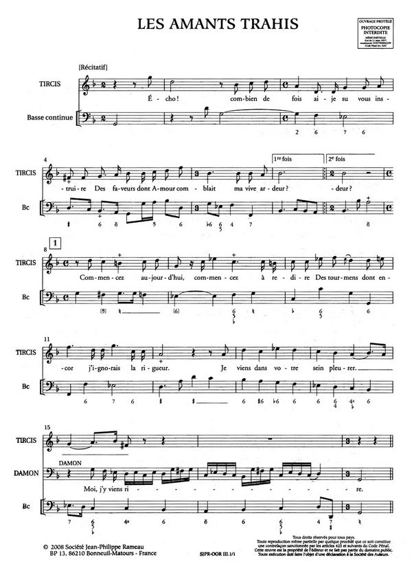 Rameau, Jean-Philippe Cantates pour voix de basse et en duo. Airs