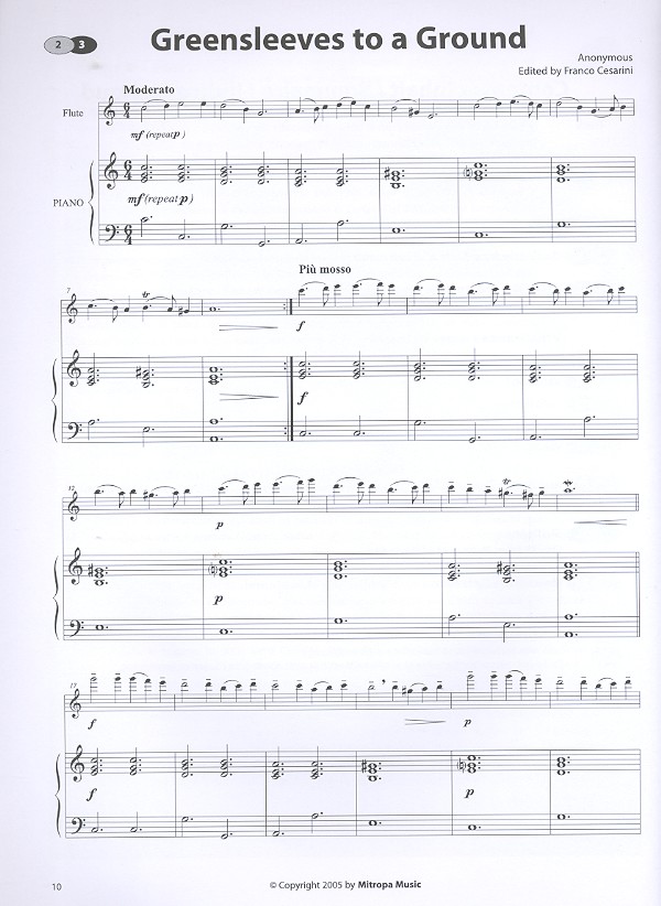 Cesarini, Franco, ed Greensleeves to a ground Badinerie from Suite no.2 (Bach) Scene des Champs-Elysees from Orphee (Gluck) Variations on a theme by Rossini (Chopin) Russisches Zigeunerlied op.462,2 (Popp) Sicilienne op.78 from Pelleas et Melisande (Faure) Morceau de concours (Massenet)
