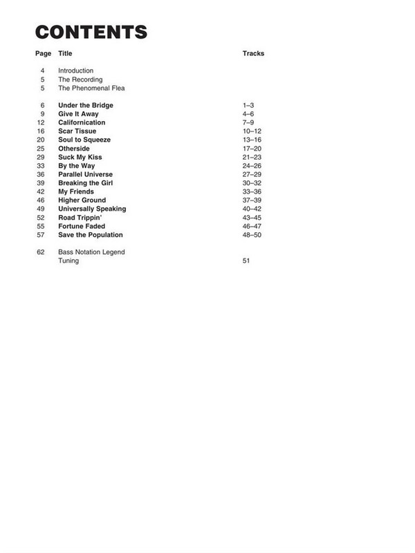Bass Signature Licks A Step-By-Step Breakdown of Flea's Bass Style and Technique Under the bridge Give it away Californication Scar tissue Soul to squeeze Otherside Suck my kiss By the way Parallel universe Breaking the girl My friends igher ground Universally speaking Road trippin' Road tripping Fortune faded Save the population