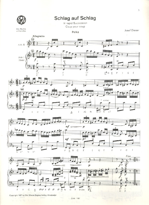 Schlag auf Schlag (Josef Dieser) Vite Vite (Hans G. Baumann) Treppauf treppab (Kurt Kirall) Im Blütenregen (Josef Dieser) Komödianten-Musik (Hans G. Baumann)