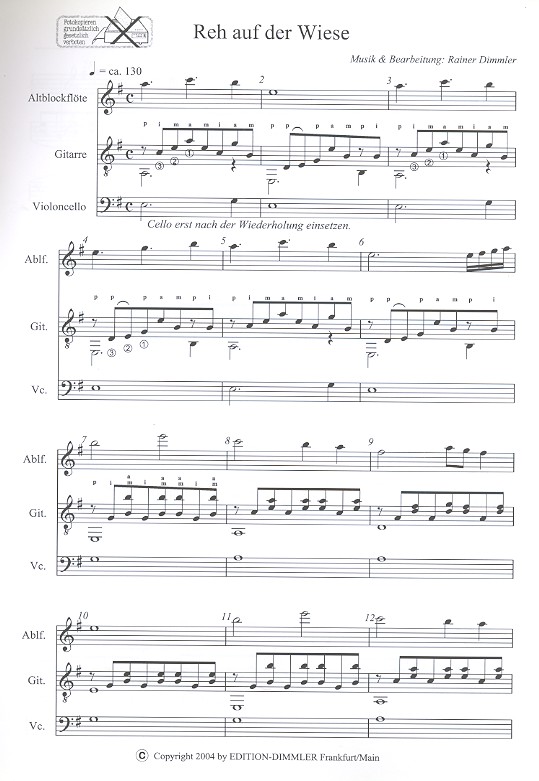 Produktinformationen "Reh auf der Wiese für Altblockflöte,"