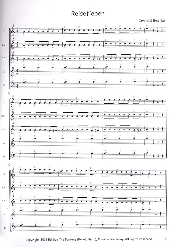 | Untertitel: | für 5 Blockflöten (SSSAB) Partitur und Stimmen |