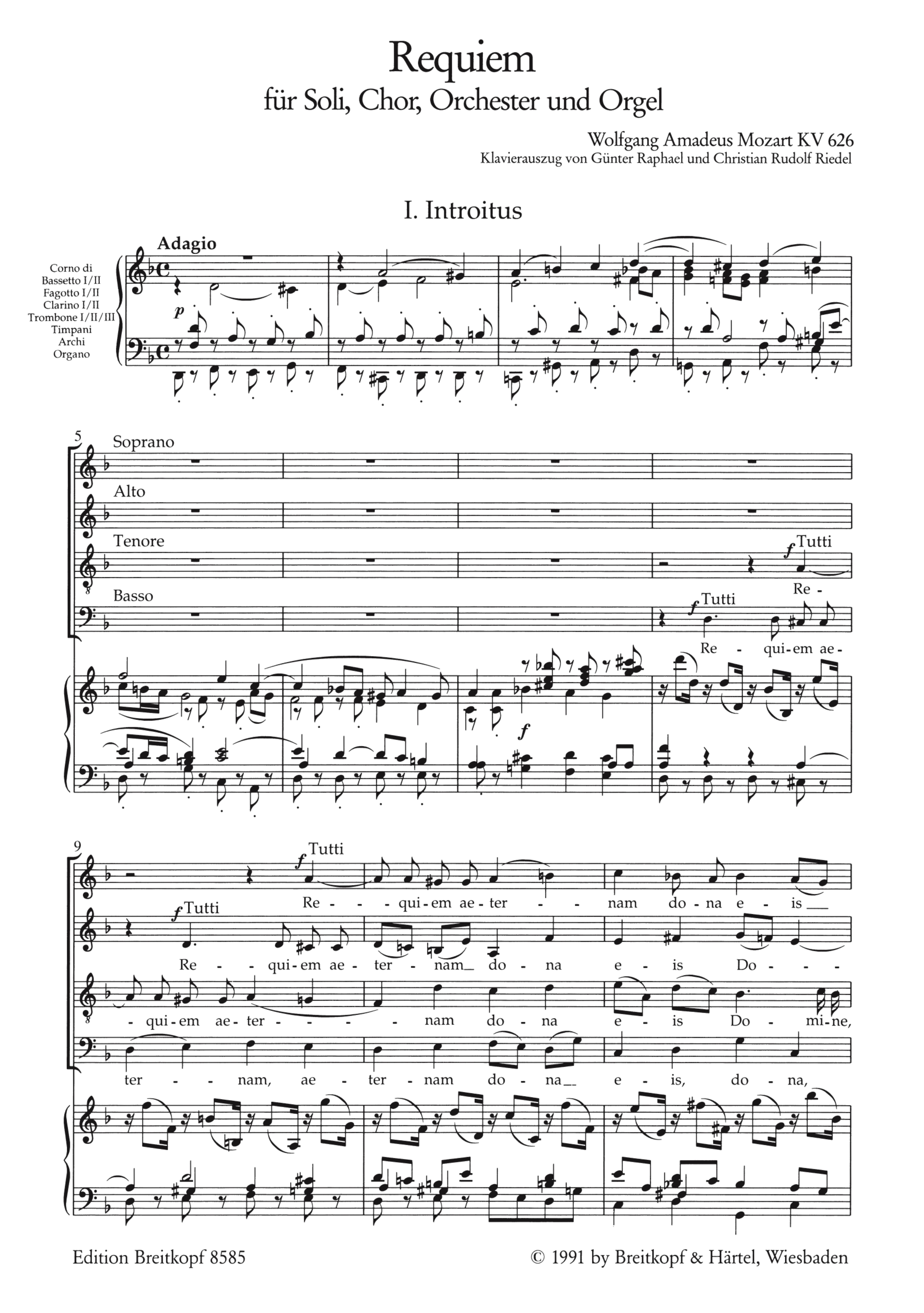 Mozarts Fragment mit den Ergänzungen von Süßmayr, Franz Xaver und Eybler,Joseph vervollständigt von Robbins Landon, H.C. Raphael, Günther, ed Unser Anliegen war es, möglichst wenig in die Rekonstruktion von Freystädtler, Eybler und Süßmayr einzugreifen und Mozarts größtes sakrales Werk so zu präsentieren, wie es von seinen trauernden und hingebungsvollen Schülern (1791-1792) liebevoll 'bearbeitet' wurde. (H. C. Robbins Landon) Die Landon-Fassung des Requiems, erstellt vom Mozart-Experten H. C. Robbins Landon, setzte Maßstäbe. Landon griff bei seiner sorgfältigen und auf dem neuesten Stand der Forschung herausgegebenen Arbeit erstmals auf die Versuche aller drei Mozart-Schüler Franz Xaver Süßmayr, Joseph Eybler und Franz Jakob Freystädtler zurück. Sein Konzept, das unvollendete Meisterwerk so zu präsentieren, dass es ihren Ergänzungen von 1791/92 möglichst nahe kommt, hat sich in der Praxis bewährt. Wer Mozarts Requiem heute in dieser historischen Gestalt aufführen und dabei weder auf die tradierte Süßmayr-Fassung noch auf neue Restaurierungen oder sogar Kompositionsversuche zurückgreifen will, ist mit der Landon-Fassung bestens beraten. Klavierauszug und Chorpartitur sind zu beiden Fassungen verwendbar. Beeindruckend ist das ausführliche Vorwort mit dem Abdruck neuester Erkenntnisse und Hinweisen auf solche Quellen. Die verleiht der Ausgabe eine hohe Aktualität und macht schon allein den Besitz der Partitur wichtig und notwendig! (Musik + Kirche) Allein das zweisprachige Vorwort zur Partitur (deutsch/englisch) ist so lesenswert, dass sich die Anschaffung lohnt! (Konstanze Heinrichs, KiMu im Bistum Limburg)