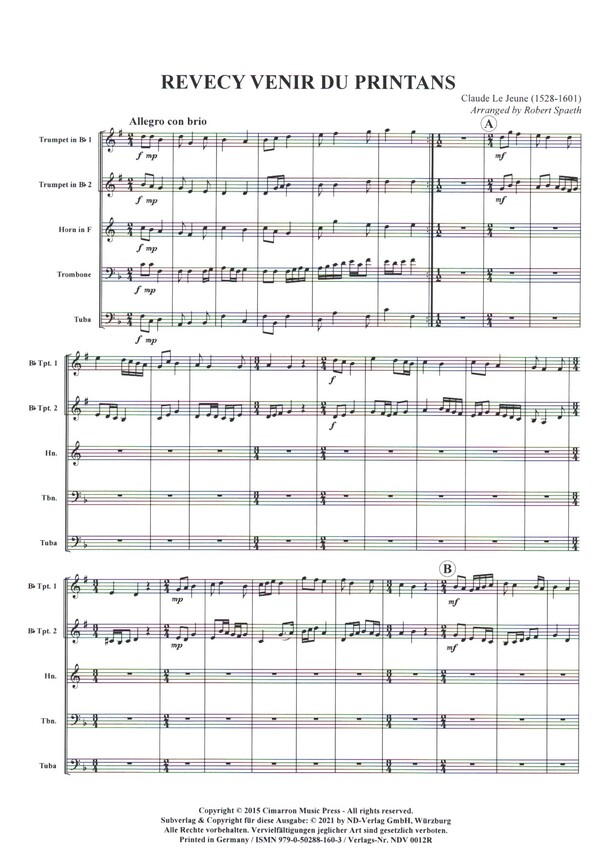 | Untertitel: | für 2 Trompeten, Horn, Posaune und Tuba Partitur und Stimmen |