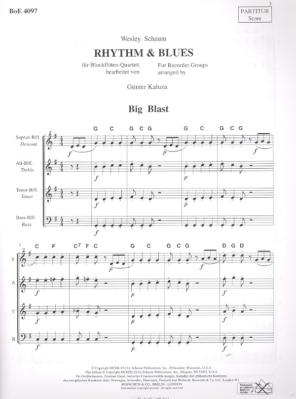 | Untertitel: | für 4 Blockflöten (SATB) Partitur und Stimmen |