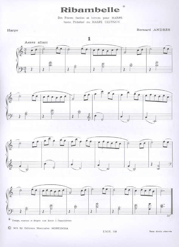 | Untertitel: | pour harpe sans pedales ou harpe celtique |