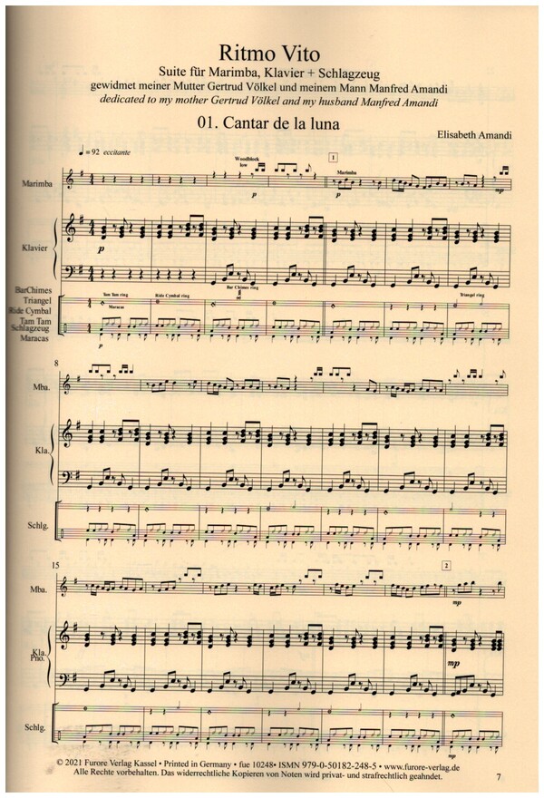 | Untertitel: | für Marimba, Klavier und Schlagzeug Partitur und Stimmen |