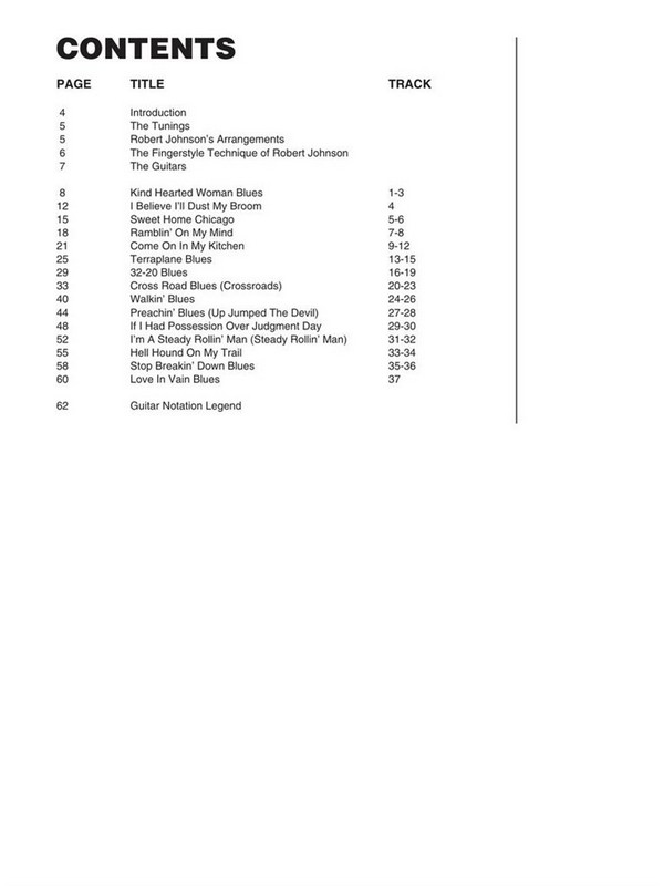 Come on in my Kitchen Cross Road Blues Hell Hound on my Trail I belive I'll dust my Broom I'm a steady rollin Man If I had Possession over Judgement Day Kind hearted Woman Blues Love in Vain Blues Preachin Blues (up jumped the Devil Ramblin on my Mind Stop breakin down Blues Sweet home Chicago Terraplane Blues 32-20 Blues Walkin Blues