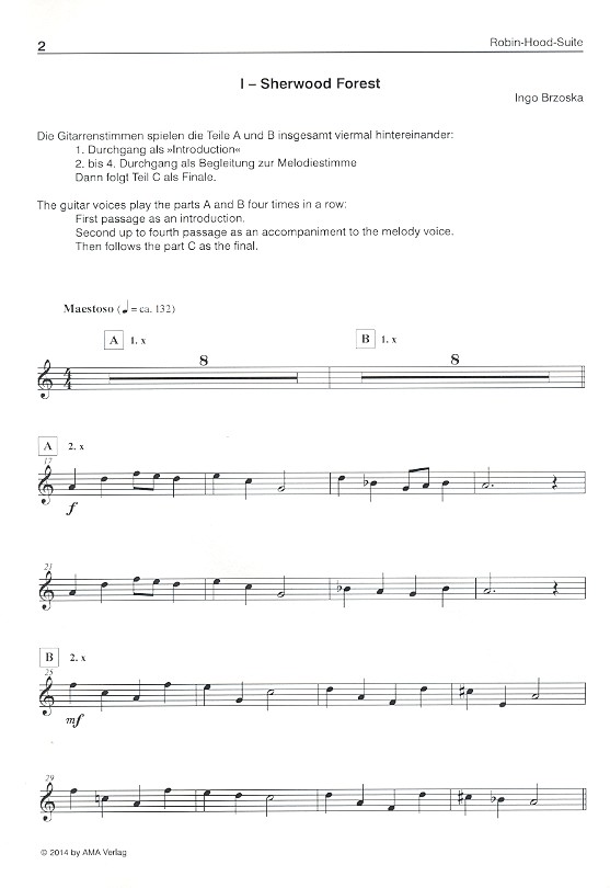 | Untertitel: | für Melodieinstrument und Gitarrenquartett oder -orchester Melodieinstrument (Blockflöte, Flöte, Violine, Oboe, Akkordeon o.a.) |