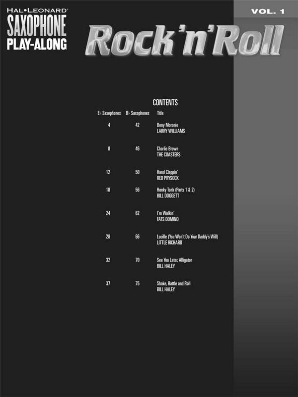Saxophone Play-Along vol.1 Play 8 Songs with Notation and Sond-alike CD Tracks Bony Moronie Charlie Brown Hand Clappin' Honky Tonk I'm walkin' Lucille (You won't do your Daddy's Will) See You later Alligator Shake rattle and roll