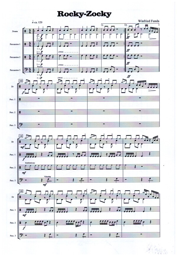 Winfried Funda Conceptions Eingesetzt werden folgende Instrumente: Drumset, Congas, Bongos, Schellenkranz, Vibraslap, 2 Pauken (oder Tom-Toms).