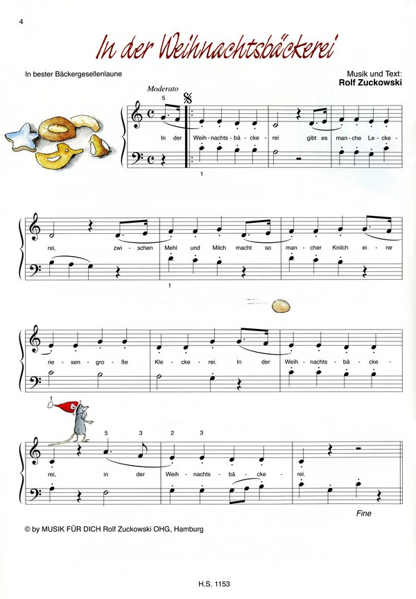 Zuckowski, Rolf May, Beate, bearb. Ginsbach, Julia, Illustration In der Weihnachtsbäckerei (2 Fassungen) Was bringt der Dezember Höchste Zeit Guten Tag ich bin der Nikolaus Fröhliche Weihnacht (macht...) Macht euch bereit Ich wünsche mit zum heiligen Christ Weihnachtszeit Kleine Kinder große Kinder (das Advents...) Das Adventskalenderlied Morgen kommt der Nikolaus Kleiner grüner Kranz Es schneit Lieber guter Weihnachtsmann Danke lieber Tannenbaum Winterkinder