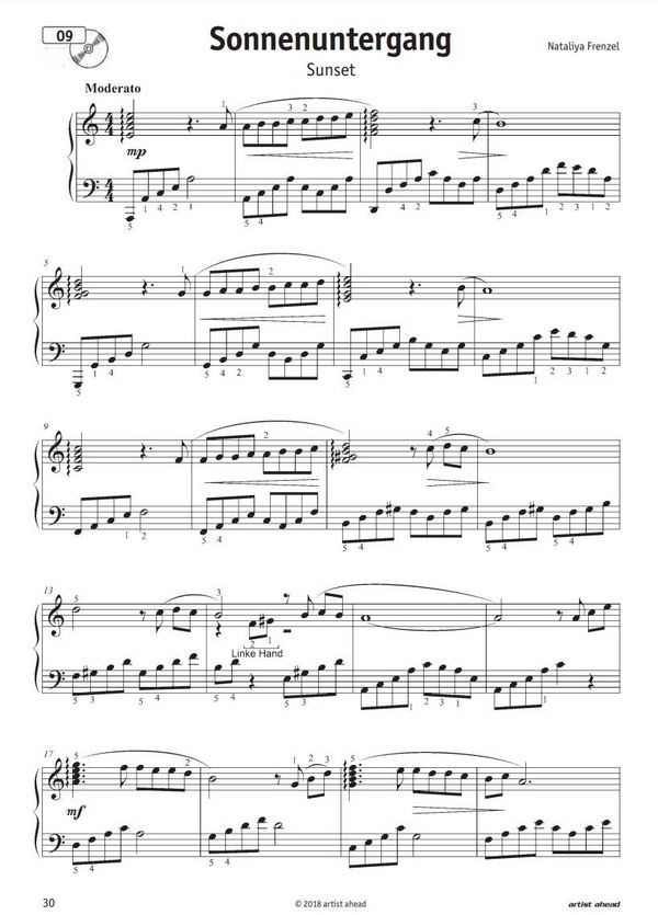 25 gefühlvolle moderne Klavierspielstücke Walzer im April (Waltz In April) Mondlandschaft (Moonscape) Ein Lied im Mai (Song In May) Auf und davon (Up And Away) Regenbogenfarben (Rainbow Colours) Pourquoi? (Why?) Wolkenlos (Cloudless) Trauriger Engel (Blue Angel) Sonnenuntergang (Sunset) Gedankenverloren (Lost In Thought) Sterne bei Nacht (Stars By Night) Sonniger Tag (Sunny Day) Spaziergang im Wald (Forest Walk) Französischer Walzer (French Waltz) Vollmond (Full Moon) Dialog (Dialogue) Frühlingswind (Spring Wind) Du und ich (You And Me) Letzten Sommer in Paris (Last Summer In Paris) Gute Laune (Happy Mood) Wieder Freunde (Friends Again) Vor langer Zeit (A Long Time ago) Ein kleines Poem (A Little Poem) Wasserfall (Waterfall) Weißer Schmetterling (White Butterfly)