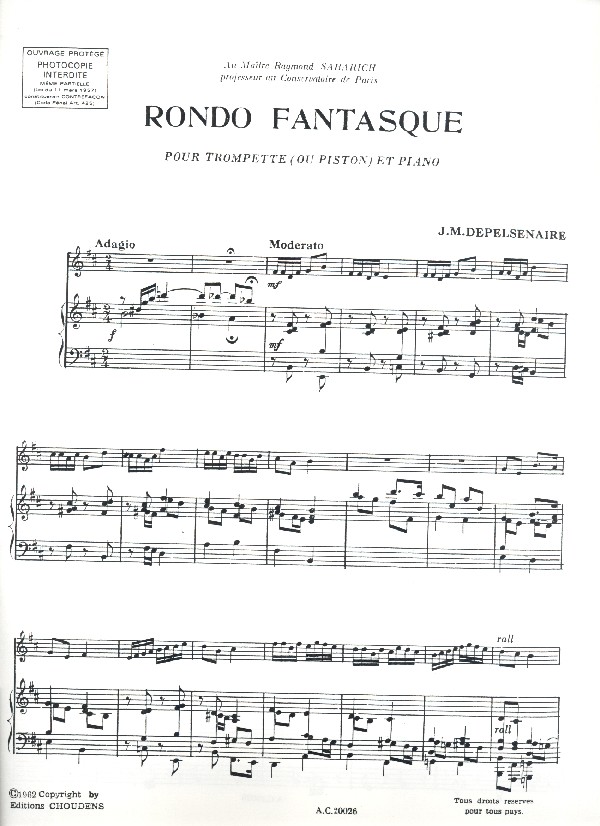 | Untertitel: | pour trompette (piston) et piano copie d'archive |