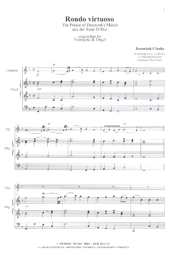 Kratzer, Bernhard, ed Theis, Paul, Orgelauszug The Prince of Denmark's March