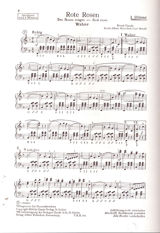 Produktinformationen "Rote Rosen Walzer für Akkordeon"