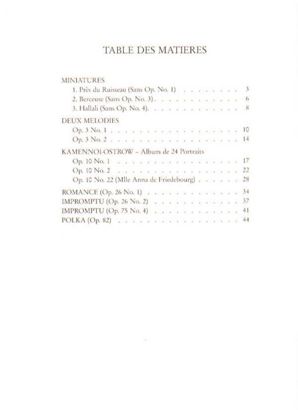 Kovats, Gabor, ed Minatures : Pres du Ruisseau aus op.1 Berceuse aus op.3 Hallali aus op.4 Melodie op.3,1 und op.3,2 Kamennoi-Ostrow - Album de 24 Portraits op.10.1-2 und 22 Romanze op.26,1 Impromtu op.26,2 Impromtu op.75,4 Polka op.82