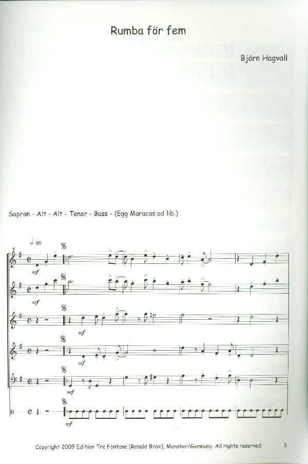 | Untertitel: | für 5 Blockflöten (SAATB) (Egg Maracas ad lib) Partitur nud Stimmen |