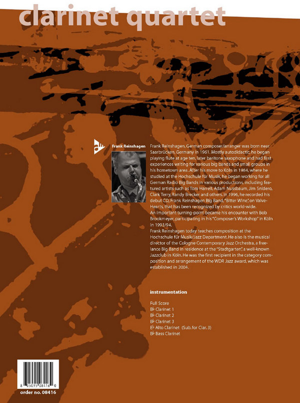 | Untertitel: | for 4 clarinets (B/B/ES/Bass) score and parts |
