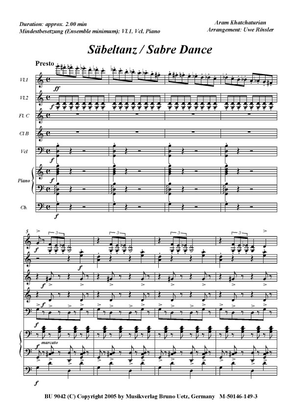 Sabre dance 2. Violine, Kontrabass, CB ad. lib.