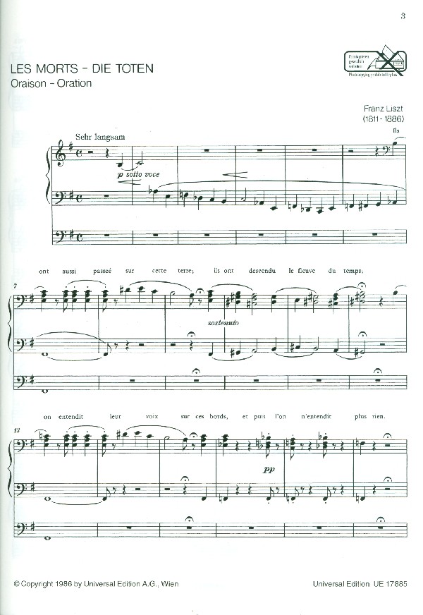 LES MORTS : ORAISON AVE MARIA VON ARCADELT SLAVIMO SLAVNO SLAVENI DER PAPST-HYMNUS TU ES PETRUS ORA PRO NOBIS : LITANEI WEIMAR'S VOLKSLIED : FASSUNG 1-2