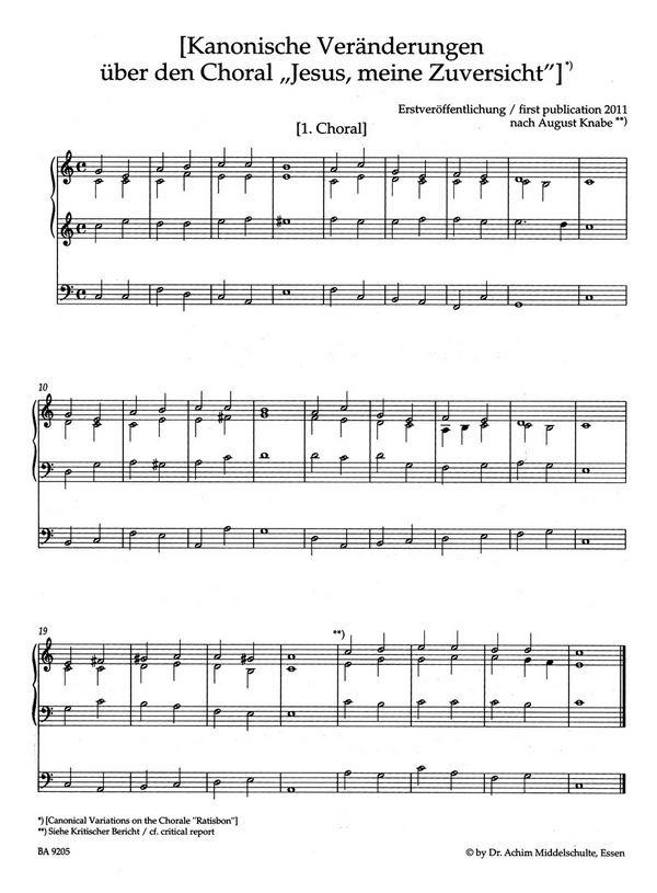 Inhalt (BuSS) Meyer, Hans-Dieter, ed Sonnentheil, Jürgen, ed Kanonische Veränderungen über den Choral Jesus meine Zuversicht Choral und passacaglia St. John Lamentation